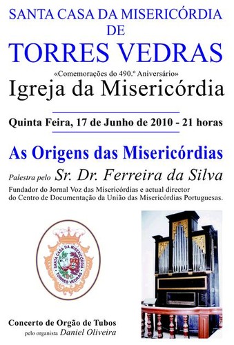 A conferência foi antecedida por um recital de órgão de tubos pelo organista Daniel Oliveira, natural de Alenquer, que tocou J. S. Bach, António Brocarte, Carlos Seixas, Juan Cabanilles, Francesco Gasparini e Andrea Luc-chesi. Vasco Fernandes, provedor da Santa Casa da Misericórdia de Torres Vedras, anunciou também que a partir do próximo mês uma das celebrações de sábado realizadas naquele templo passarão a ser acompanhadas pelo referido organista.